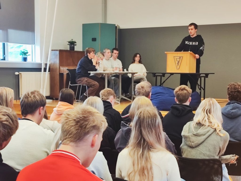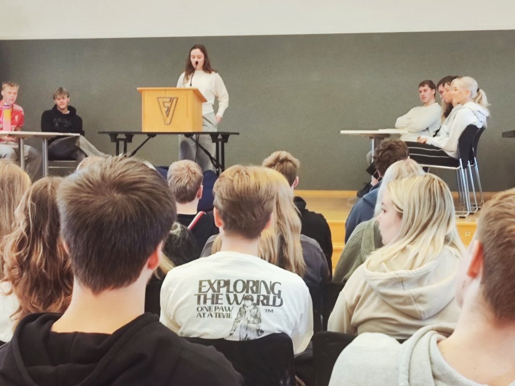 Nemendur í ensku (ENSK3MB05) byrjuðu vikunameð krafti og buðu gestum og gangandi að fylgjast með innbyrðis rökræðukeppni þar sem deilumálið var loftslagsbreytingar. Keppt var í 3 lotumog voru liðin annaðhvort með eða á mót því að loftslagsbreytingar væru af mannavöldum eða ekki ( Climatechange: Believers vs. sceptics).  Gestir fengu síðan að meta ræðumennsku og missannfærandi rök ræðumanna eftir ákveðnum mælikvörðum. Þetta var mjög skemmtilegt og áhugavert verkefni